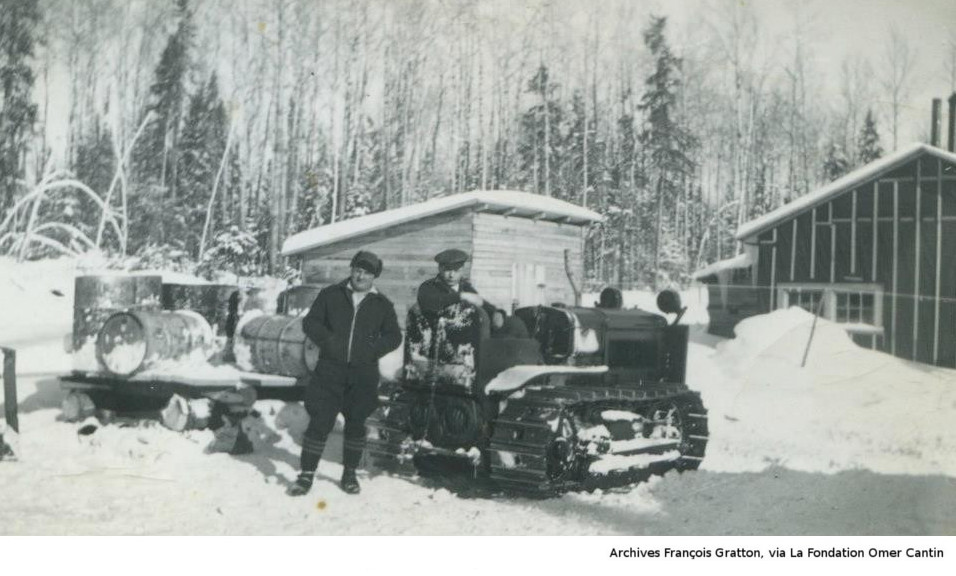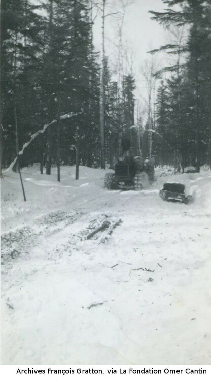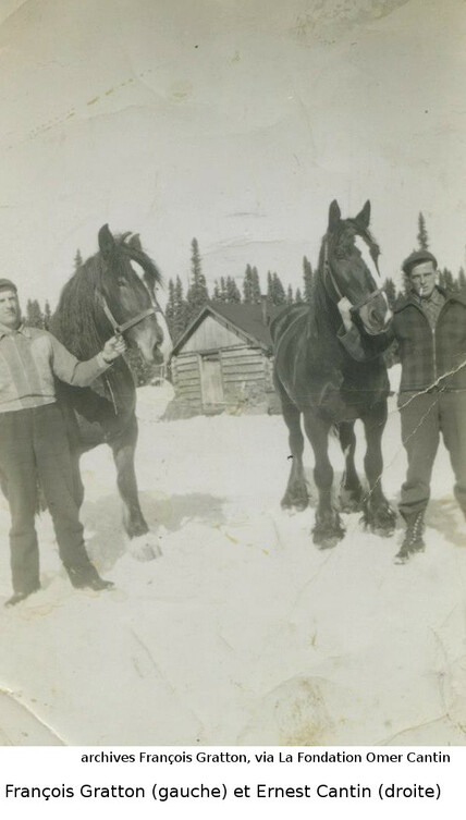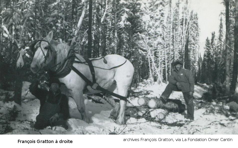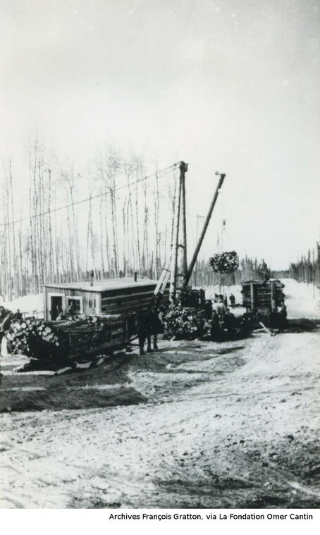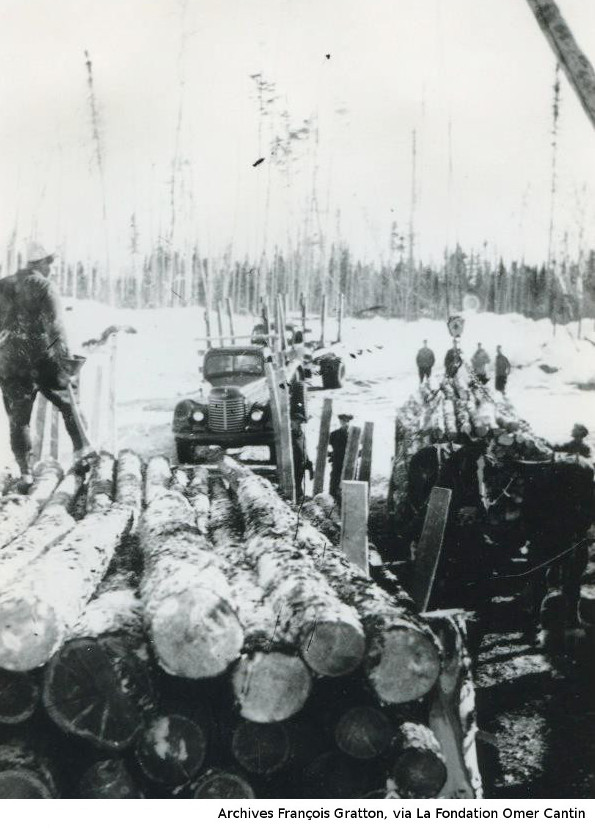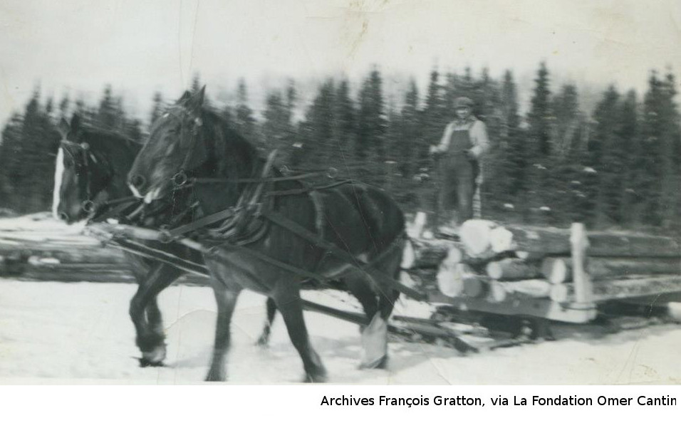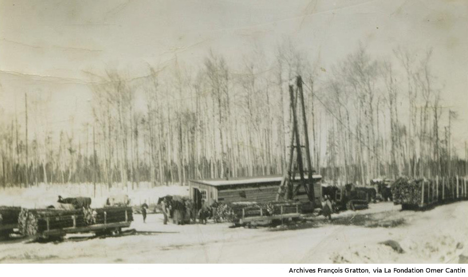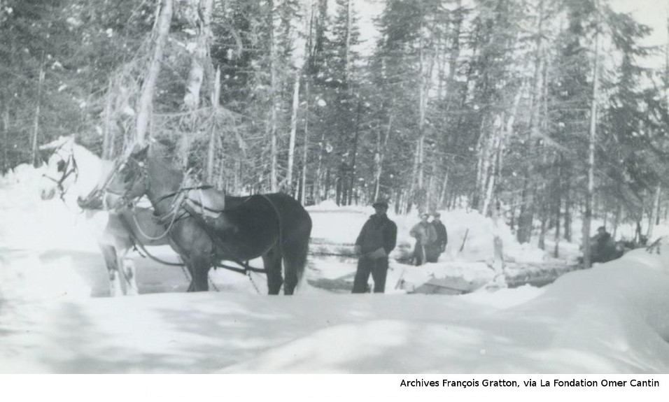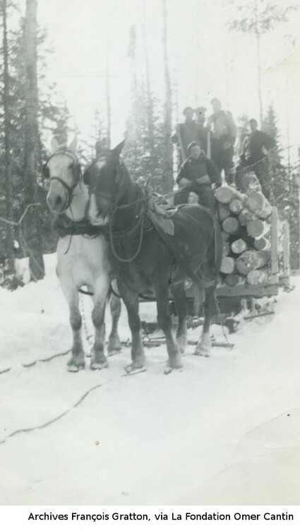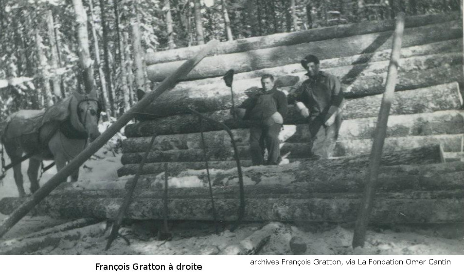 Les photos de la coupe de bois l'hiver nous viennent des archives de François Gratton, via